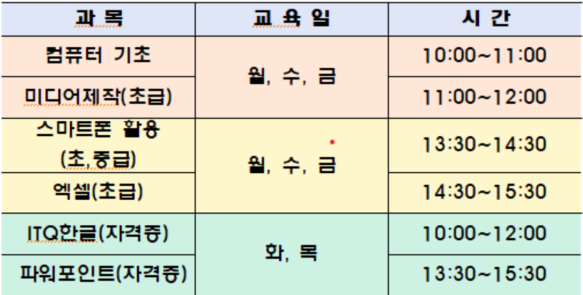 교육과정 | (사)경기도장애인정보화협회성남시지회